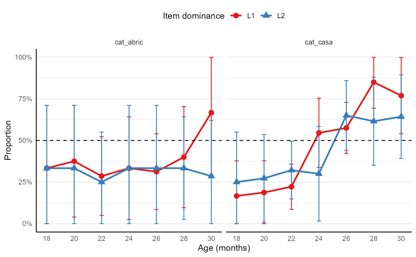 labs(x = "Age (months)", y = "Proportion", colour = "Item dominance", fill = "Item dominance", shape = "Item dominance") +